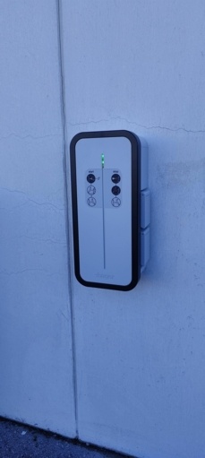 Installation d'une borne de recharge Witty de Hager à aubagne dans la zone industrielle.Le câblage se fait par l'arrière en traversant le mur et parait ainsi invisible.